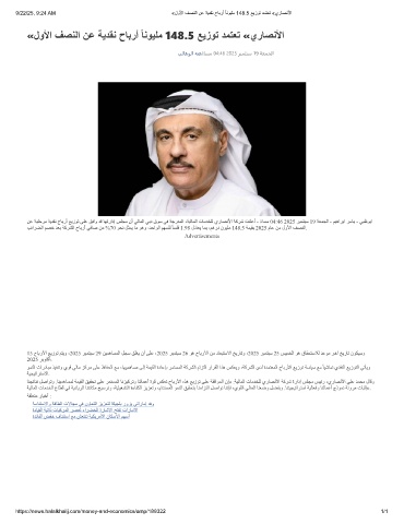 9/22/25, 9:24 AM «لوﻷا فﺻﻧﻟا نﻋ ﺔﯾدﻘﻧ حﺎﺑرأ ً ﺎﻧوﯾﻠﻣ 148.5 ﻊﯾزوﺗ دﻣﺗﻌﺗ «يرﺎﺻﻧﻷا