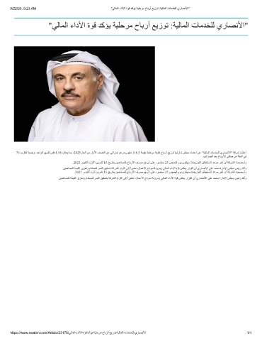 9/22/25, 9:23 AM "ﻲﻟﺎﻣﻟا ءادﻷا ةوﻗ دﻛؤﯾ ﺔﯾﻠﺣرﻣ حﺎﺑرأ ﻊﯾزوﺗ :ﺔﯾﻟﺎﻣﻟا تﺎﻣدﺧﻠﻟ يرﺎﺻﻧﻷا"