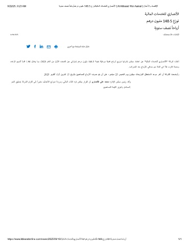 9/22/25, 9:23 AM ﺔﯾوﻧﺳ فﺻﻧ ً ﺎﺣﺎﺑرﺄﻣھرد نوﯾﻠﻣ 148.5 عزوﺗﺔﯾﻟﺎﻣﻟا تﺎﻣدﺧﻠﻟ يرﺎﺻﻧﻷا | Al-Iktissad Wal-Aamal | لﺎﻣﻋﻷاو دﺎﺻﺗﻗﻹا