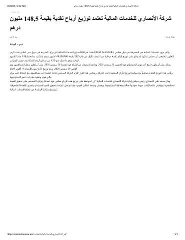 9/22/25, 9:22 AM مھرد نوﯾﻠﻣ 148,5 ﺔﻣﯾﻘﺑ ﺔﯾدﻘﻧ حﺎﺑرأ ﻊﯾزوﺗ دﻣﺗﻌﺗ ﺔﯾﻟﺎﻣﻟا تﺎﻣدﺧﻠﻟ يرﺎﺻﻧﻷا ﺔﻛرﺷ