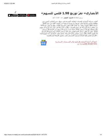9/22/25, 9:22 AM «مﮭﺳﻠﻟ سﻠﻓ 1.98 ﻊﯾزوﺗ ّ رﻘﺗ «يرﺎﺻﻧﻷا