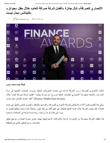 9/26/25, 8:52 AM «تﺳﯾإ لدﯾﻣ سﻧﺎﻧﯾﺎﻓ زﺋاوﺟ» لﻔﺣ لﻼﺧ «مﺎﻌﻠﻟ ﺔﻓارﺻ ﺔﻛرﺷ لﺿﻓأ» ةزﺋﺎﺟ لﺎﻧﺗ «ﺔﻓارﺻﻠﻟ يرﺎﺻﻧﻷا» - fintechgate
