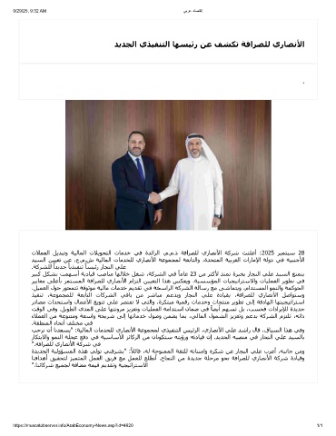تﻼﻤﻌﻟا ﻞﻳﺪﺒﺗو ﺔﯿﻟﺎﻤﻟا تﻼﻳﻮﺤﺘﻟا تﺎﻣﺪﺧ ﻲﻓ ةﺪﺋاﺮﻟا ،م.م.ذ ﺔﻓاﺮﺼﻠﻟ يرﺎﺼﻧﻷا ﺔﻛﺮﺷ ﺖﻨﻠﻋأ :2025 ﺮﺒﻤﺘﺒﺳ 28