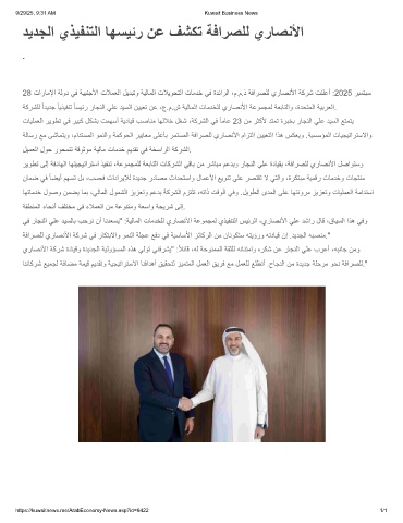 28 تارﺎﻣﻹا ﺔﻟود ﻲﻓ ﺔﯾﺑﻧﺟﻷا تﻼﻣﻌﻟا لﯾدﺑﺗو ﺔﯾﻟﺎﻣﻟا تﻼﯾوﺣﺗﻟا تﺎﻣدﺧ ﻲﻓ ةدﺋارﻟا ،م.م.ذ ﺔﻓارﺻﻠﻟ يرﺎﺻﻧﻷا ﺔﻛرﺷ تﻧﻠﻋأ :2025 رﺑﻣﺗﺑﺳ
