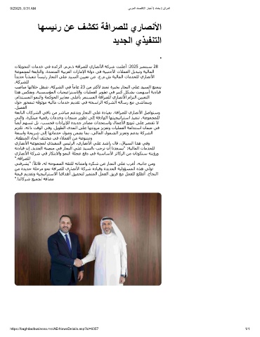 تﻼﻳﻮﺤﺘﻟا تﺎﻣﺪﺧ ﻲﻓ ةﺪﺋاﺮﻟا ،م.م.ذ ﺔﻓاﺮﺼﻠﻟ يرﺎﺼﻧﻷا ﺔﻛﺮﺷ ﺖﻨﻠﻋأ :2025 ﺮﺒﻤﺘﺒﺳ 28