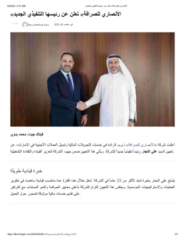 9/29/25, 9:31 AM «دﯾدﺟﻟا يذﯾﻔﻧﺗﻟا ﺎﮭﺳﯾﺋر نﻋ نﻠﻌﺗ «ﺔﻓارﺻﻠﻟ يرﺎﺻﻧﻷا