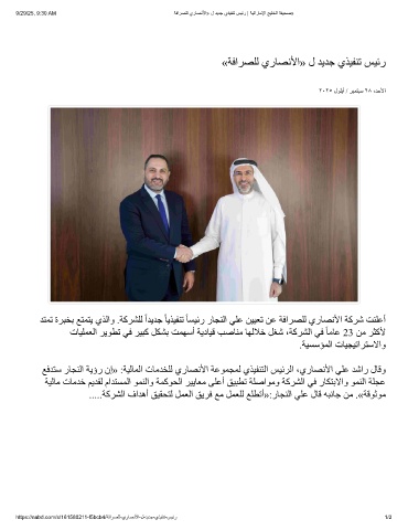 9/29/25, 9:30 AM ﺔﻓارﺻﻠﻟ يرﺎﺻﻧﻷا» ل دﯾدﺟ يذﯾﻔﻧﺗ سﯾﺋر | ﺔﯾﺗارﺎﻣﻹا ﺞﯾﻠﺧﻟا ﺔﻔﯾﺣﺻ»