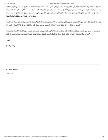 ﺔﻓارﺻﻠﻟ يرﺎﺻﻧﻷا ﺔﻛرﺷ ةدﺎﯾﻗو ةدﯾدﺟﻟا ﺔﯾﻟوؤﺳﻣﻟا هذھ ﻲﻟوﺗ ﻲﻧﻓرﺷﯾ" :ًﻼﺋﺎﻗ ،ﮫﻟ ﺔﺣوﻧﻣﻣﻟا ﺔﻘﺛﻠﻟ ﮫﻧﺎﻧﺗﻣاو هرﻛﺷ نﻋ رﺎﺟﻧﻟا ﻲﻠﻋ برﻋأ ،ﮫﺑﻧﺎﺟ نﻣو