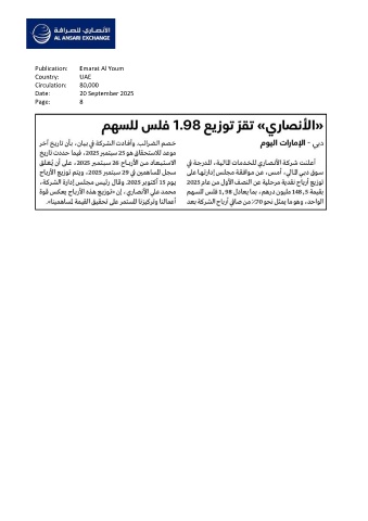 Publication: Emarat Al Youm Country: UAE Circulation: 80,000 Date: 20 September 2025 Page: 8