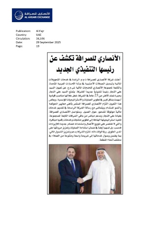 Publication: Al Fajr Country: UAE Circulation: 34,596 Date: 29 September 2025 Page: 19