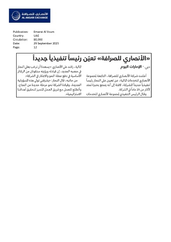 Publication: Emarat Al Youm Country: UAE Circulation: 80,000 Date: 29 September 2025 Page: 12