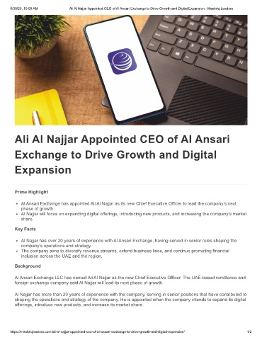 https://mashriqleaders.com/ali-al-najjar-appointed-ceo-of-al-ansari-exchange-to-drive-growth-and-digital-expansion/  1/2
