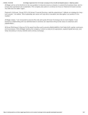 https://mashriqleaders.com/ali-al-najjar-appointed-ceo-of-al-ansari-exchange-to-drive-growth-and-digital-expansion/  2/2