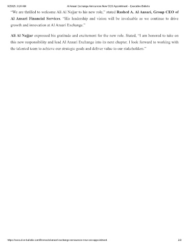 9/29/25, 9:24 AM Al Ansari Exchange Announces New CEO Appointment – Executive Bulletin