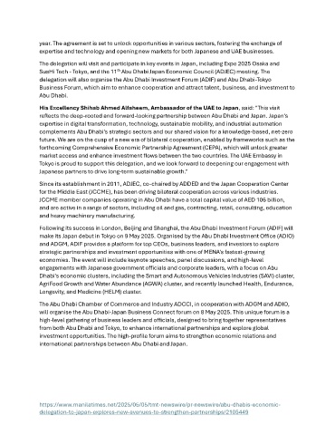 delegation will also organise the Abu Dhabi Investment Forum (ADIF) and Abu Dhabi-Tokyo