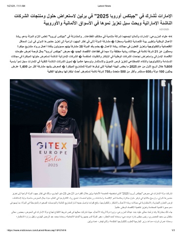 زﯾزﻌﺗ ﻰﻟإ ﺔﯾﻣارﻟا ﺔﻟودﻟا دوﮭﺟ رﺎطإ ﻲﻓ كﻟذو ،يرﺎﺟﻟا وﯾﺎﻣ 23 ﻰﺗﺣ 21 نﻣ ةرﺗﻔﻟا لﻼﺧ نﯾﻟرﺑ ﺔﯾﻧﺎﻣﻟﻷا ﺔﻣﺻﺎﻌﻟا ﮫﻔﯾﺿﺗﺳﺗ يذﻟا "2025 ﺎﺑوروأ سﻛﺗﯾﺟ" ضرﻌﻣ ﻲﻓ تارﺎﻣﻹا ﺔﻟود تﻛرﺎﺷ