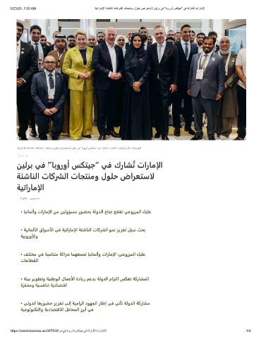 5/23/25, 7:50 AM ﺔﯾﺗارﺎﻣﻹا ﺔﺋﺷﺎﻧﻟا تﺎﻛرﺷﻟا تﺎﺟﺗﻧﻣو لوﻠﺣ ضارﻌﺗﺳﻻ نﯾﻟرﺑ ﻲﻓ "ﺎﺑوروأ سﻛﺗﯾﺟ" ﻲﻓ كرﺎﺷُﺗ تارﺎﻣﻹا