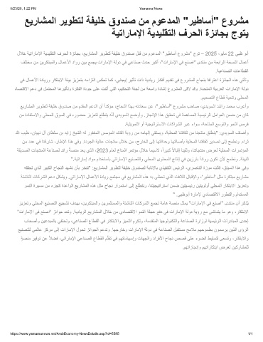 لﻼﺧ ﺔﯾﺗارﺎﻣﻹا ﺔﯾدﯾﻠﻘﺗﻟا فرﺣﻟا ةزﺋﺎﺟﺑ ،ﻊﯾرﺎﺷﻣﻟا رﯾوطﺗﻟ ﺔﻔﯾﻠﺧ قودﻧﺻ لﺑﻗ نﻣ موﻋدﻣﻟا "رﯾطﺎﺳأ عورﺷﻣ" جوﺗ – 2025 ،وﯾﺎﻣ 22 ﻲﺑظ وﺑأ