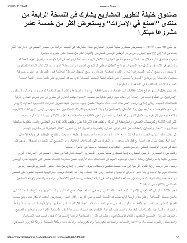 يذﻟا "تارﺎﻣﻹا ﻲﻓ ﻊﻧﺻا" ىدﺗﻧﻣ نﻣ ﺔﻌﺑارﻟا ﺔﺧﺳﻧﻟا ﻲﻓ ﮫﺗﻛرﺎﺷﻣ لﻼﺧ ﻊﯾرﺎﺷﻣﻟا رﯾوطﺗﻟ ﺔﻔﯾﻠﺧ قودﻧﺻ ضرﻌﺗﺳﯾ – 2025 ،وﯾﺎﻣ 18 ﻲﺑظ وﺑأ