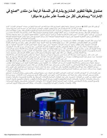 يﺬﻟا "تارﺎﻣﻹا ﻲﻓ ﻊﻨﺻا" ىﺪﺘﻨﻣ ﻦﻣ ﺔﻌﺑاﺮﻟا ﺔﺨﺴﻨﻟا ﻲﻓ ﻪﺘﻛرﺎﺸﻣ لﻼﺧ ﻊﻳرﺎﺸﻤﻟا ﺮﻳﻮﻄﺘﻟ ﺔﻔﯿﻠﺧ قوﺪﻨﺻ ضﺮﻌﺘﺴﻳ � 2025 ،ﻮﻳﺎﻣ 18 ﻲﺒظ ﻮﺑأ
