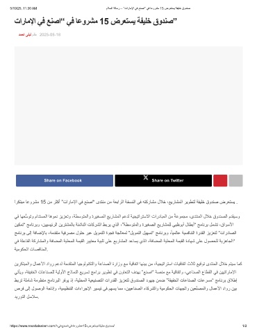 5/19/25, 11:30 AM مﻼﺳﻟا ﺔﻟﺎﺳر – ”تارﺎﻣﻹا ﻲﻓ ﻊﻧﺻا“ ﻲﻓ ﺎﻋورﺷﻣ 15 ضرﻌﺗﺳﯾ ﺔﻔﯾﻠﺧ قودﻧﺻ