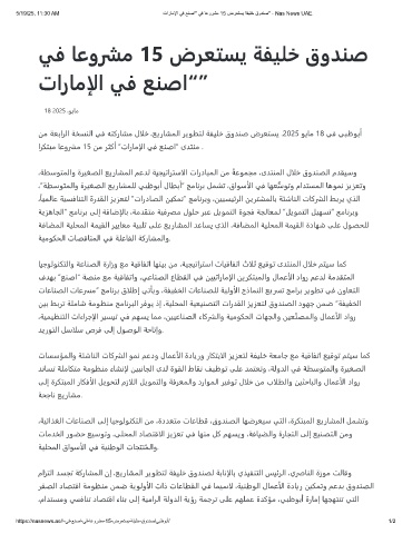5/19/25, 11:30 AM تارﺎﻣﻹا ﻲﻓ ﻊﻧﺻا" ﻲﻓ ﺎﻋورﺷﻣ 15 ضرﻌﺗﺳﯾ ﺔﻔﯾﻠﺧ قودﻧﺻ" - Nas News UAE