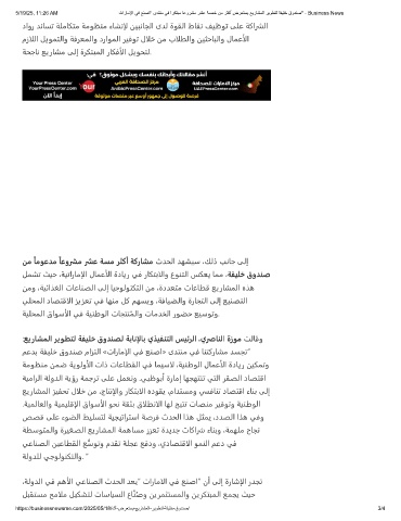 5/19/25, 11:26 AM تارﺎﻣﻹا ﻲﻓ ﻊﻧﺻا" ىدﺗﻧﻣ ﻲﻓ ارﻛﺗﺑﻣ ﺎﻋورﺷﻣ رﺷﻋ ﺔﺳﻣﺧ نﻣ رﺛﻛأ ضرﻌﺗﺳﯾ ﻊﯾرﺎﺷﻣﻟا رﯾوطﺗﻟ ﺔﻔﯾﻠﺧ قودﻧﺻ" - Business News