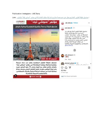 Publication: Instagram – UAE Barq Link: ،نابايلاب "كيت يشوس" رمتؤم يف ةكراشملل ةركتبم ةيتارامإ عيراشم ةسمخ معد نع نلعي عيراشملا ريوطتل ةفيلخ قودنص :