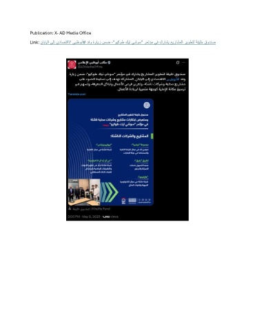 Publication: X- AD Media Office Link: نابايلا ىلإ يداصتقلاا يبظوبأ# دفو ةرايز نمض ،"ويكوط كيت يشوس" رمتؤم يف كراشي عيراشملا ريوطتل ةفيلخ قودنص