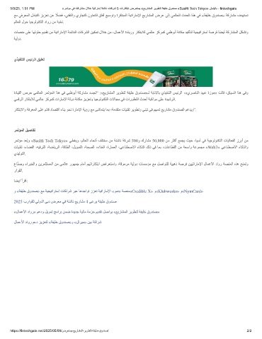 5/9/25, 1:51 PM «رﻣﺗؤﻣ ﻲﻓ ﮫﺗﻛرﺎﺷﻣ لﻼﺧ ﺔﯾﺗارﺎﻣإ ﺔﺋﺷﺎﻧ تﺎﻛرﺷ 5 تارﺎﻛﺗﺑا ضرﻌﺗﺳﯾ «ﻊﯾرﺎﺷﻣﻟا رﯾوطﺗﻟ ﺔﻔﯾﻠﺧ قودﻧﺻ «SusHi Tech Tokyo» نﺎﺑﺎﯾﻟﺎﺑ - fintechgate