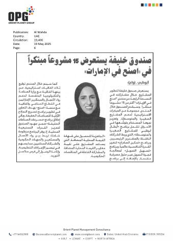 Publication: Al Wahda Country: UAE Circulation: 19,400 Date: 19 May 2025 Page: 6