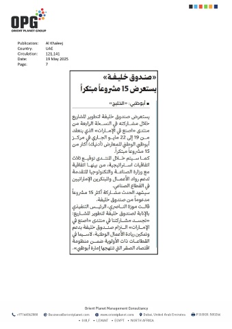 Publication: Al Khaleej Country: UAE Circulation: 121,141 Date: 19 May 2025 Page: 7