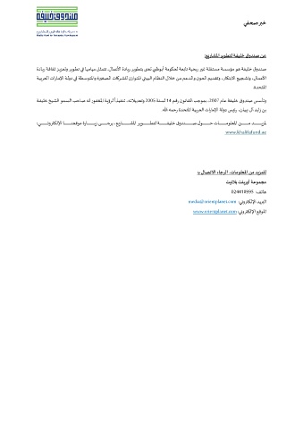 ﺔــﻴ�ﺮﻌﻟا تارﺎــﻣﻹا ﺔــﻟود �ــ� ﺔﻄــﺳﻮﺘﳌاو ة��ﻐــﺼﻟا تﺎ�ﺮــﺸﻠﻟ نزاﻮــﺘﳌا يــئﻴﺒﻟا مﺎــﻈﻨﻟا لﻼــﺧ ﻦــﻣ ﻢﻋﺪــﻟاو نﻮــﻌﻟا ﻢﻳﺪــﻘﺗو ،رﺎــ�ﺘﺑﻻا ﻊﻴجــ��و ،لﺎــﻤﻋﻷا