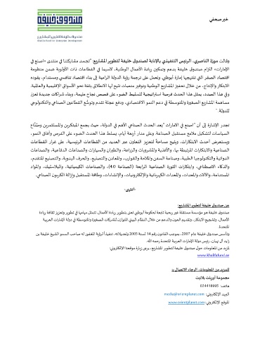 ��ﻮﻟﻮﻨﻜﺘﻟاو ��ﺎﻨﺼﻟا ن�ﻋﺎﻄﻘﻟا ﻊﺳﻮﺗو مﺪﻘﺗ ﺔﻠج� ﻊﻓد ، و يدﺎﺼﺘﻗﻻا ﻮﻤﻨﻟا ﻢﻋد �� ﺔﻄﺳﻮﺘﳌاو ة��ﻐﺼﻟا ﻊيرﺎﺸﳌا ﺔﻤهﺎﺴﻣ