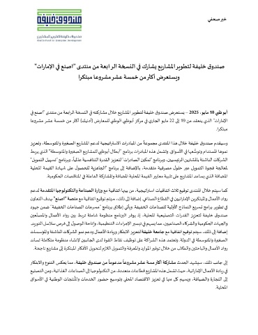 �� ﻊﻨﺻا" ىﺪﺘﻨﻣ ﻦﻣ ﺔﻌ�اﺮﻟا ﺔخ�نﻟا �� ﮫﺘﻛرﺎﺸﻣ لﻼﺧ ﻊيرﺎﺸﳌا ﺮ�ﻮﻄﺘﻟ ﺔﻔﻴﻠﺧ قوﺪﻨﺻ ضﺮﻌﺘﺴ� – 2025 ،ﻮﻳﺎﻣ 18 ي�ﻇ ﻮﺑأ