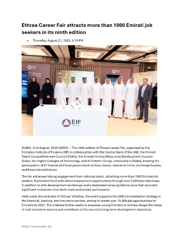 DUBAI, 21st August, 2025 (WAM) -- The ninth edition of Ethraa Career Fair, organised by the