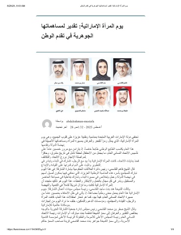 8/28/25, 8:43 AM نطوﻟا مدﻘﺗ ﻲﻓ ﺔﯾرھوﺟﻟا ﺎﮭﺗﺎﻣھﺎﺳﻣﻟ رﯾدﻘﺗ :ﺔﯾﺗارﺎﻣﻹا ةأرﻣﻟا موﯾ