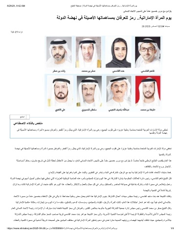 ﺔﺿﮭﻧ ﻲﻓ ﺔﻠﯾﺻﻷا ﺎﮭﺗﺎﻣھﺎﺳﻣو ةأرﻣﻟا ةرﯾﺳﻣﺑ نﺎﻓرﻌﻟاو رﺧﻔﻠﻟ ًازﻣر لﺛﻣﯾ يذﻟا ،ﺔﯾﺗارﺎﻣﻹا ةأرﻣﻟا موﯾ ﻲھو ،ﻊﯾﻣﺟﻟا بوﻠﻗ ﻰﻠﻋ ةزﯾزﻋ ﺔﯾﻧطو ﺔﺑﺳﺎﻧﻣﺑ ةدﺣﺗﻣﻟا ﺔﯾﺑرﻌﻟا تارﺎﻣﻹا ﺔﻟود ﻲﻔﺗﺣﺗ