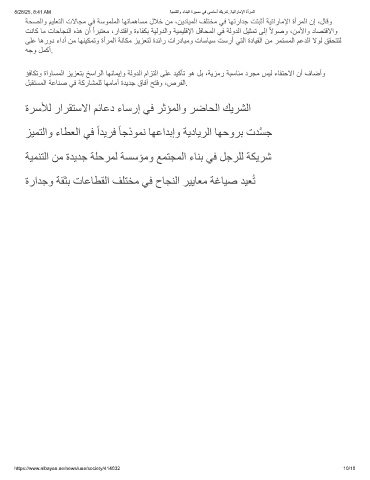 8/28/25, 8:41 AM ﺔﯾﻣﻧﺗﻟاو ءﺎﻧﺑﻟا ةرﯾﺳﻣ ﻲﻓ ﻲﺳﺎﺳأ كﯾرﺷ..ﺔﯾﺗارﺎﻣﻹا ةأرﻣﻟا