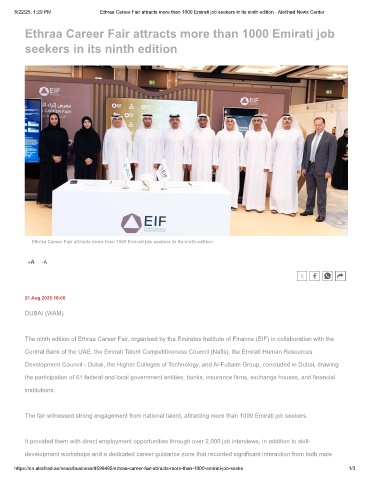 8/22/25, 1:29 PM Ethraa Career Fair attracts more than 1000 Emirati job seekers in its ninth edition - Aletihad News Center