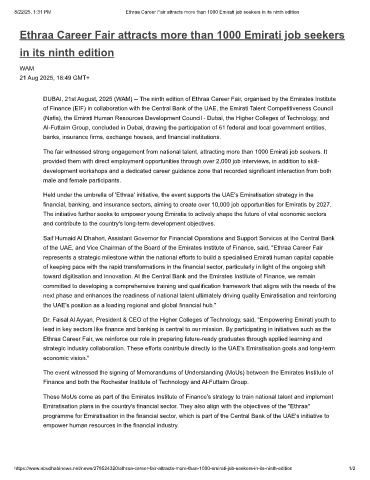 8/22/25, 1:31 PM                     Ethraa Career Fair attracts more than 1000 Emirati job seekers in its ninth edition