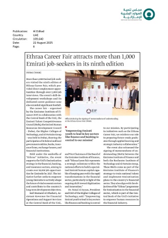 Publication: Al Etihad Country: UAE Circulation: 109,640 Date: 22 August 2025 Page: 6