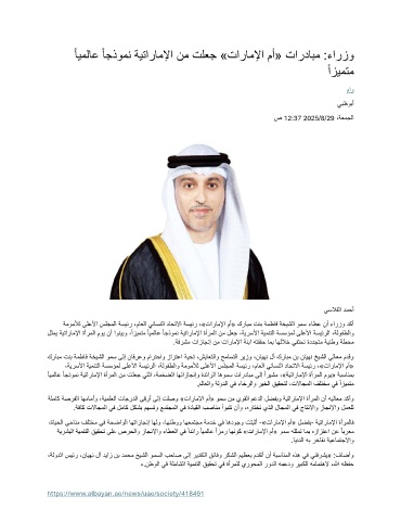 ةيرشبلا ةيمنتلا قيقحت ىلع صرحلاو زاجنلإاو ءاطعلا يف ًادئار ًايملاع ًازمر اهنوك »تاراملإا مأ« ومس هلثمت امب هزازتعا نع ًابرعم