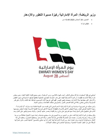 اهتازاجنإ ىلع ءوضلا طيلستل ”نيسمخلاب يفتحن ديب ًادي“ ماعلا اذهل ةيتاراملإا ةأرملا موي راعش دامتعا ءاجو ةديشرل ا انتدايق معدب راطلإا