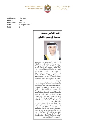 Publication: Al Khaleej Country: UAE Circulation: 121,141 Date: 29 August 2025 Page: 5