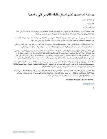 نأ دكأ ثيح ،يبدب ةرازولا رقم يف يسلافلا ةفيلخ باشلا قئاسلاب ،ةينطولا ةضايرلا معدو ةيضايرلا بهاوملا ةياعرل تاراملإا ةنجل