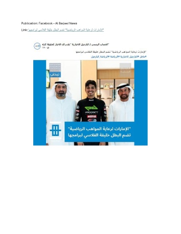 Publication: Facebook – Al Barjeel News Link: اهجماربل يسلافلا ةفيلخ لطبلا مضت "ةيضايرلا بهاوملا ةياعرل تاراملإا"