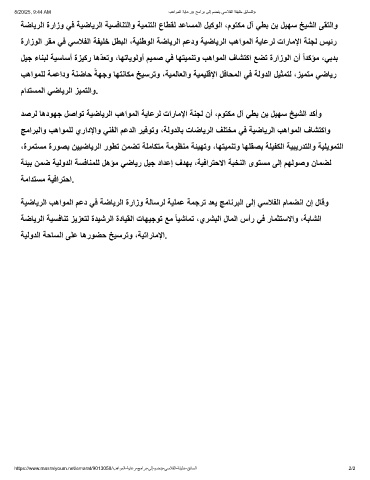 دﺻرﻟ ﺎھدوﮭﺟ لﺻاوﺗ ﺔﯾﺿﺎﯾرﻟا بھاوﻣﻟا ﺔﯾﺎﻋرﻟ تارﺎﻣﻹا ﺔﻧﺟﻟ نأ ،موﺗﻛﻣ لآ ﻲطﺑ نﺑ لﯾﮭﺳ ﺦﯾﺷﻟا دﻛأو