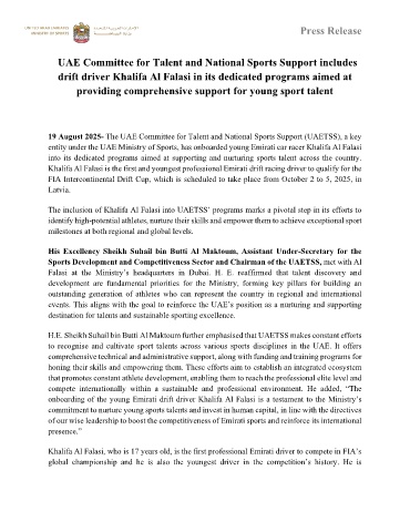 onboarding of the young Emirati drift driver Khalifa Al Falasi is a testament to the Ministry’s