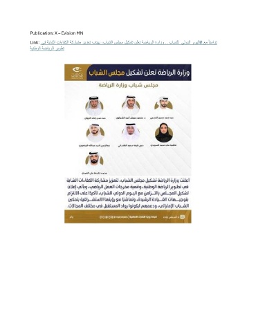 Publication: X – Evision MN Link: يف ةباشلا تاءافكلا ةكراشم زيزعت فدهب ،بابشلا سلجم ليكشت نلعت ةضايرلا ةرازو .. بابشلل_يلودلا_مويلا# عم ًانمازت ةينطولا ةضايرلا ريوطت